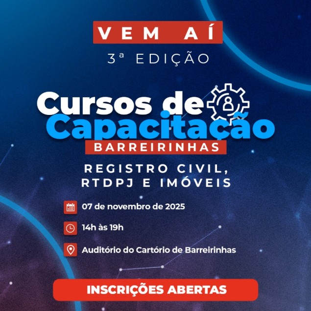 O encontro vai acontecer no auditório da nova sede do Cartório de Barreirinhas, no Maranhão, localizado na Avenida 01, quadra F, Lote 02 – Loteamento Parque das Dunas – Cidade Nova e contará com apenas 60 VAGAS.