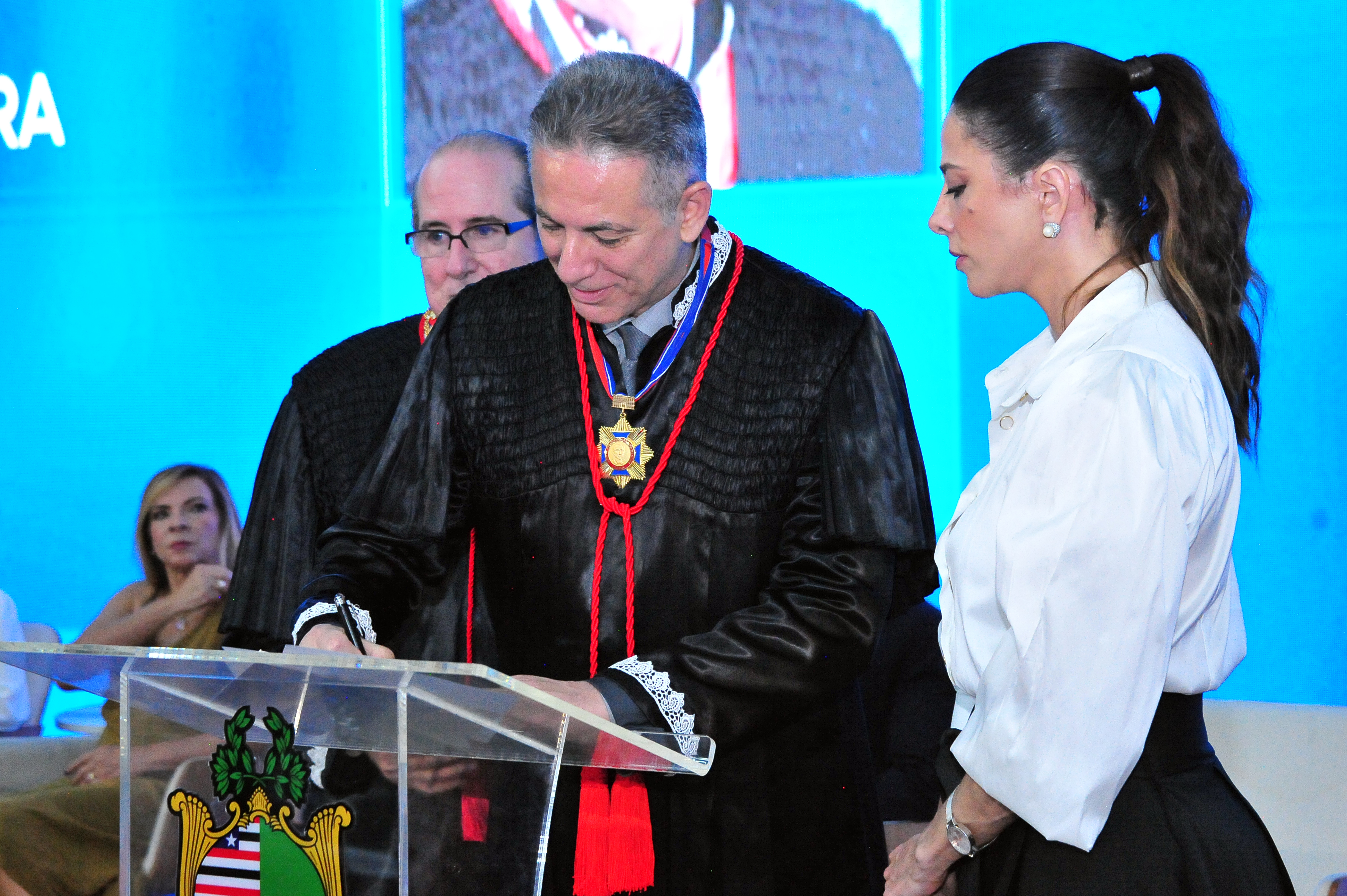 A mesa de autoridades contou com a participação do governador do estado, Carlos Brandão; da presidente da Assembleia Legislativa do Maranhão, deputada estadual Iracema Vale; do ministro do Superior Tribunal de Justiça (STJ), Reynaldo Soares da Fonseca; do presidente do Conselho de Presidentes dos Tribunais de Justiça do Brasil (Consepre) e presidente do Tribunal de Justiça do Ceará (TJCE), desembargador Heráclito Vieira Neto; da presidente do Tribunal de Justiça de Sergipe (TJSE), desembargadora Iolanda Guimarães; do procurador-geral de Justiça em exercício, Orfileno Bezerra; da prefeita do município de São Luís, professora Esmênia Miranda; do subprocurador-geral do Ministério Público junto ao Tribunal de Contas da União (MPTCU), Paulo Soares Bugarin; do vice-presidente e corregedor do Tribunal Regional do Trabalho da 16ª Região (TRT16), desembargador Gerson de Oliveira Filho; do professor Alberto Tavares; do presidente da Associação dos Magistrados do Maranhão (AMMA), juiz Marco Adriano Fonsêca; e do presidente da Ordem dos Advogados do Brasil - Seccional Maranhão, advogado Kaio Saraiva.